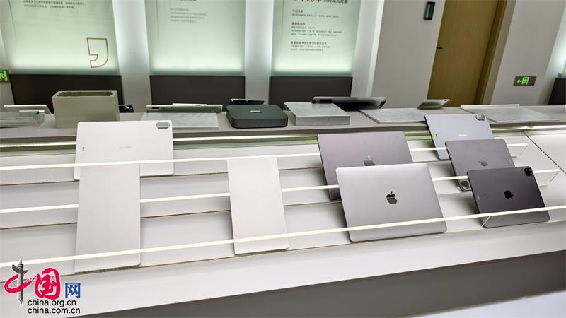 这是山东创新金属科技有限公司生产的平板电脑外壳。山东创新金属科技有限公司是国内规模最大的铝合金材料生产基地,综合产能超过500万吨,铝合金棒材市场占有率连续10年位列全球第一。公司产品广泛应用于3C电子、轨道交通、汽车轻量化、航空航天、新能源等领域,公司长期服务于中国高铁、中国远洋、华为、特斯拉、苹果等国际、国内知名品牌,并突破行业中熔体净化、黑线率高等“卡脖子”难题,现有专利573项、省级科研平台6个。(中国网记者 秦金月 摄)