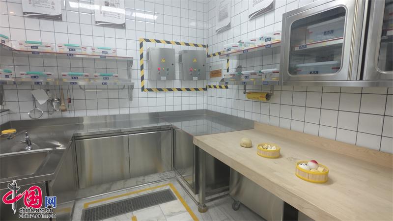 这是山东金佰特商用厨具有限公司打造的商用厨房样板间。山东金佰特商用厨具有限公司是一家集生产、研发、销售于一体的现代化商用厨具制造企业。公司具有完善的技术研发体系和较强的创新能力,拥有省级技术研发中心,参与制定《商用燃气燃烧器具》国家标准及多项行业标准,获得国家专利100多项。(中国网记者 秦金月 摄)