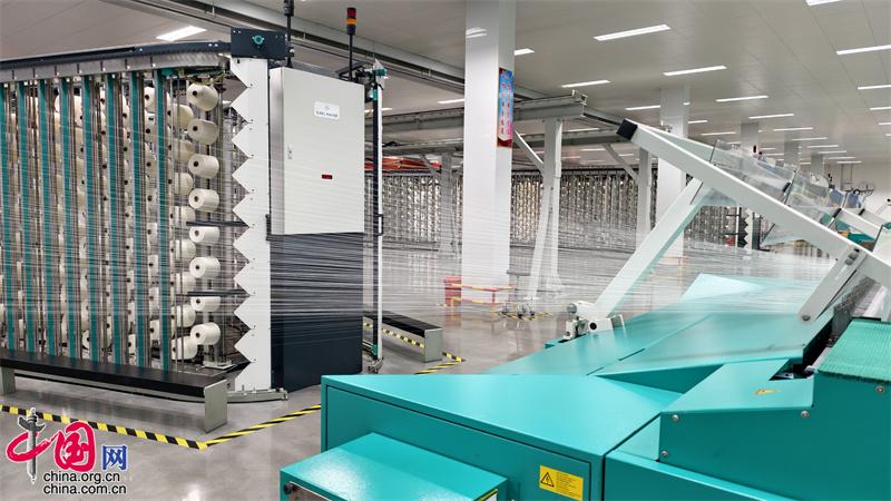 这是山东魏桥纺织科技有限公司的生产车间。山东魏桥纺织科技有限公司主要从事棉纱、坯布、牛仔布及电力和蒸汽的生产、销售及分销,是具有全球竞争力的棉纺织企业。公司建设的绿色智能一体化生产线,采用世界上先进的生产设备,并配以强大的大数据平台和先进的管理系统,实现了“生产全程智能化”“控制系统智慧化”“在线监测信息化”“制造过程绿色化”,获评中国纺织行业科技进步奖一等奖、全国质量标杆、中国智能制造十大科技进展、智能制造示范工厂等十几项荣誉。(中国网记者 秦金月 摄)