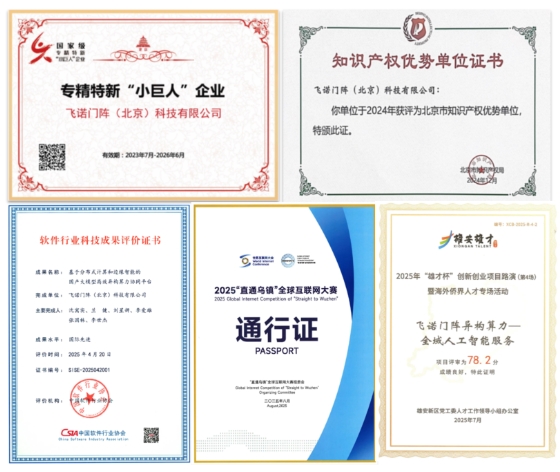 飞诺门阵自成立以来,始终专注于新一代网络计算体系的创新研发和产业实践。短短六年间,飞诺门阵实现了从北京市专精特新中小企业(2021年)到国家级专精特新小巨人企业(2023年)、再到国家级重点小巨人企业的三级跨越,展现出持续增强的创新活力与产业引领价值。技术创新方面,飞诺门阵已申请超过80项发明专利,其中40项已获授权,包括美国、俄罗斯等国际专利;公司主持制定1项国家标准、参与制定8项国家标准及数十项行业及团体标准,不断提升市场竞争力。产品体系方面,公司构建了以异构算力调度、APU、全栈人工智能工具集和行业智能体平台等为核心的产品矩阵,并广泛应用于智能安防、智慧水利、能源双碳、低空应急等国家重点行业,打造了众多示范案例。商业成就方面,飞诺门阵累计营收已超5亿元,并与清华大学、上海师范大学、河海大学等高校共建联合研发机构,将数十个能力模块整合到公司解决方案能力仓中,相继斩获北京市知识产权优势单位、广东省科技进步一等奖等重要荣誉。