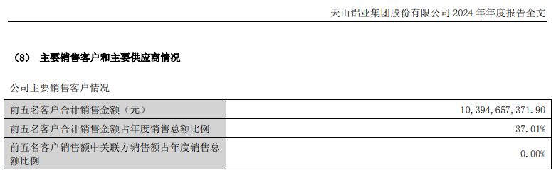 申请文件显示,创新国际电解铝冶炼行业的客户主要为有色金属加工制造企业及贸易商,这一行业的下游客户主要为铝合金压延企业等,但依赖程度并不高。以主业为电解铝冶炼的天山铝业和云铝股份为例,2024年,天山铝业对前五大客户销售额合计约为103.95亿元,占比为37.01%;云铝股份前五大客户销售额约为212.77亿元,占比为39.07%。