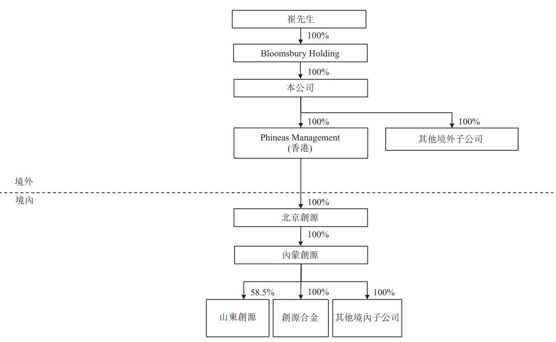 2013年11月至2016年8月期间,创新集团通过一系列内部重组取得了内蒙创源90%的股权。2016年12月,内蒙创源进一步增资,期间创新集团认购了全部新增注册资本2700万元。2017年4月,创新集团进一步向少数股东收购其余1%股权,内蒙创源成为创新集团的全资子公司。